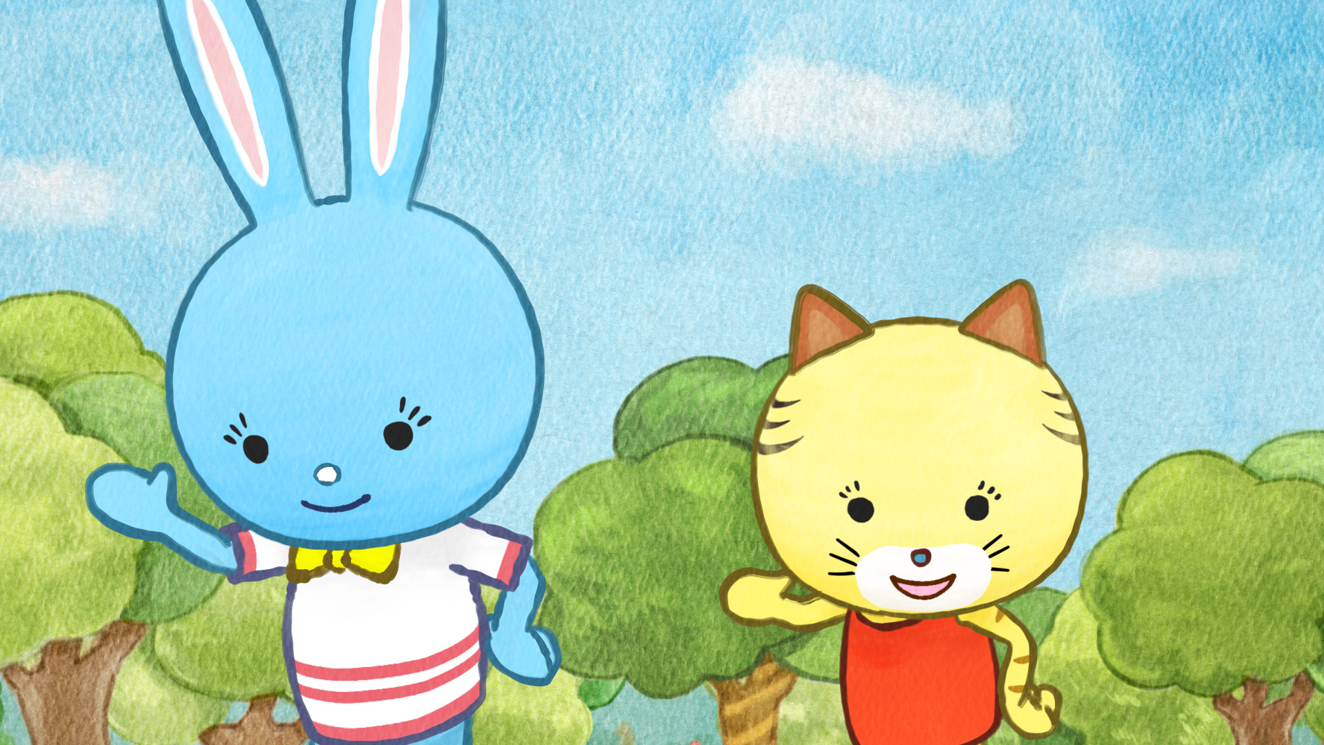 広場へみんなが集まってきた時、コージーはモンキチと目を合わせられずに落ち着かないようです。