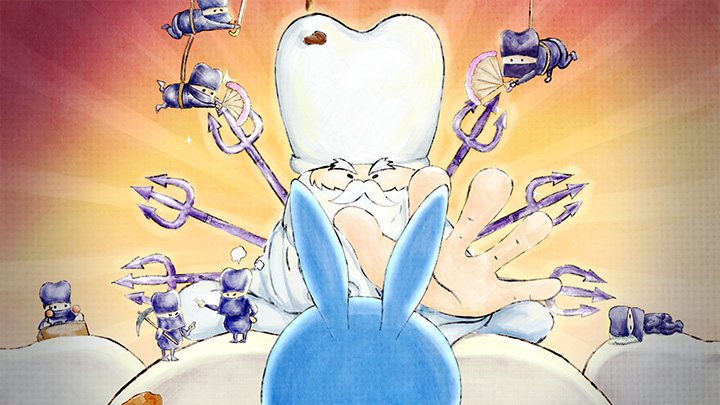 良い子のみなさんなら、そう、きっと気づいているでしょうね。甘いおかしがお口の中にたくさん残ったままにしていたら、虫歯がいっぱいできてしまいます。
